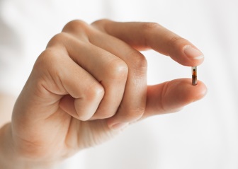 実物です。(直径1.4mm、長さ8.2mm程度の長さ8.2mm程度の円筒形のカプセル)